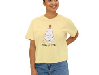 Christmas Cat Women’s Boxy Tee – Festive and Stylish