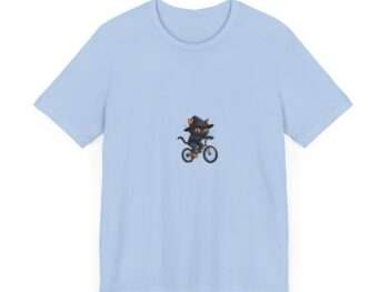 Black Cat Shirt, Halloween Black Cat Riding Bicycle Shirt, Unisex Short Sleeve Tee